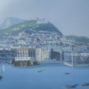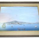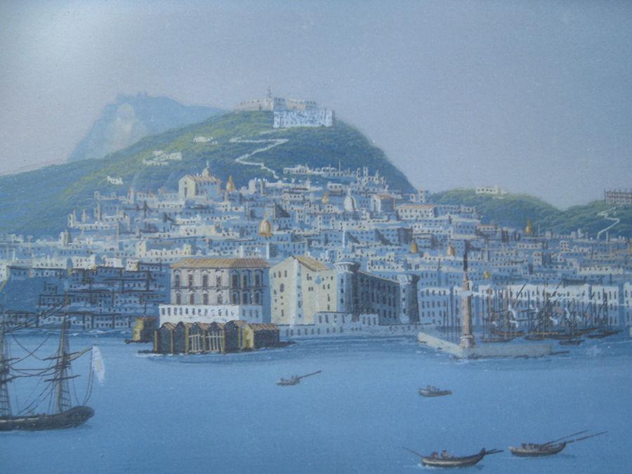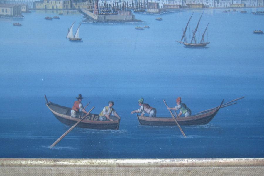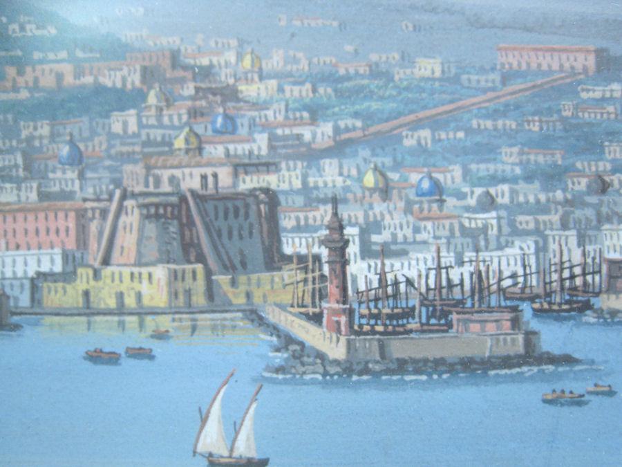 Pair Antique Neopolitan School Gouache Watercolor Paintings of Naples Harbor