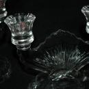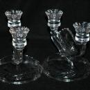 Pair of Clear Depression Glass Double Candelabras with Etched leaves