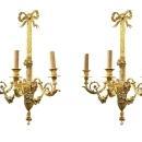 Pair Large French Louis XVI Style Gilt and Silvered Bronze Sconces