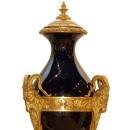 Louis XVI Style Ormolu Sevres Cobalt Blue Porcelain Cassolettes in Atheniennes