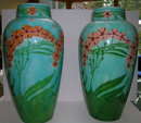 Pair of Minton English China Secessionist Vases in very good condition. There are no cracks or chips. It measures 19" high and the circumference at the largest part is 30 1/4".