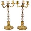 Pair Rock Crystal and Rose Quartz Bronze Candelabra