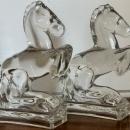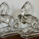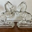 Pair of Vintage LE Smith Glass Rearing Horses MCM Clear Horse 1940s Mid Century Bookends