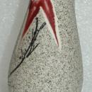 Pebbled Glazed Porcelain Bud Vase with Flower Asian Japanese Art . It is 7.5" tall. The pebbling is a gray tan with a texture that resemble sand. The flower looks red in the picture of it is more of a maroon are outlined with white and are smooth . The black stems and branches are applied over the rough texture.