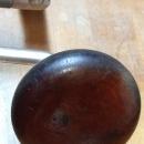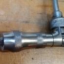 This is a very nice, clean, and polished patented ratchet hand brace, and it has a 10" dia. sweep. This model features the 3 position ratchet adjuster for the rachet system directional adjustment. It has an early patent design aligator jaw without any spring for opening the jaws, by design. The jaws open by gravity as the threaded sleeve is loosened. The chuck works fine, very good working ratchet system as well. It is also marked "P.S.&W. CO. NO. 3910" basically a abbreviated name used by (PECK, STOW, & WILCOX). The head turns smoothly, capped with a very nice hardwood handle, and the crank handle matches it very well in condition and appearence. The condition is very good overall, with no rust and very little wear overall. About 95% polished nickel plating intact, look very nice! No damage, a very well cared for tool. Both handles are very nice condition. In really good working condition overall. A quality made brace, still in great shape, nice looking too! This brace measures 13" long overall.
