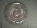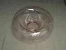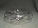 Elegant pink glass console in perfect condition. Rolled edge with etched daisy-like flowers. About ten inches in diameter and three inches deep.