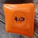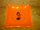 The Playboy Club fired on orange & black painted glass ashtray drink coaster with sexy pin up girl silhouette. Retro 1970's era bar lounge accessory.