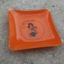 PLAYBOY CLUB SEXY PIN UP GIRL ORANGE BLACK PAINTED GLASS ASHTRAY DRINK COASTER