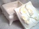 Porcelain/Lided Box/Molded yellow Flowers/Square/Legged