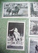 Offering these 11 Stryker's Photogloss Rodeo Series postcards including #24 - Gene Autry's Rodo Parade; #6 - Roy Matthews in Brahma calf roping; #19 - Howard McCrory bulldogging, Clinton Booth Hazing;#8 - Sam Stewart fighting Brahma bull; #4 - Ray Ramsey lassoing five racing rodeo horses; #23 = Dan & Virginia Wilcox trick riding & fancy roping; #18 - Buck Echols calf roping & Jesse Goodspeed steer roping; #3 - Rose Smith riding Easy Money; #13 - Junior Martin on Carlsbad Bat; #15 - Micky Hicks on Ridin' Blackhawk; and #17 - John Jordon on Strawberry Roan. All cards in are very good unused condition, all have the Stryker signature on the photo, all come in plastic sleeves. Nice cards for your collection!