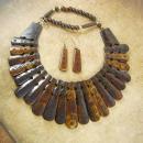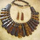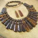 Vintage PRIMITIVE carved NEcklace HUGE BIB collar & Earrings