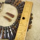 This set makes a statement and when you wear it you are going to feel unctuously scrumptilicious!. The wide hand carved bib has a really neat Indian design on them. The length around the neck is 18" and the width is 2". The earrings are 2 ½" ( includes the wire. It is in excellent condition It looks like wood but it is really some type of bone.