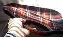 A really cute red wool plaid purse with a faux tortise(plastic) handle. It measures approx. 12"X10 1/2". The shipping fees quoted for shipping are for first class/NO insurance in USA.