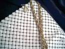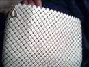 A nice example of Whiting&Davis later mesh bags. These are larger medallions, aprox. 1/4" square. There is some wear and scuffs to the finish, but, still very usable. It needs a bit of repair to the part that holds the ring for the chain strap. It has torn.The linning is in excellent condition. It measures aprox. 10"X8".