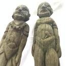 A collection of two weathered Dayak Iban Guardian statues in traditional Loincloth and parang sword, each carved from the hardest wood in the world, Belian/Iron/Billionwood. Serious collector hurry!! Such eroded artifacts are extremely scarce these days. Circa 1900. Sarawak Borneo.