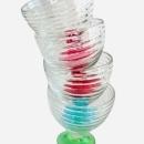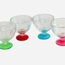 ARC Swirl Glass Dessert Ice Cream Dishes each with different colored foot , Vintage Set of four . - France Mismatched colorful set including red,pink,green and blue. Perfect for sorbet/ice cream/parfaits and fruit.