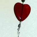 Or Best OfferRed Glass Heart and Hand Pendant, Hand Crafted One of a Kind. I put this together a large transparent Czech glass heart bead and paired it with a transparent glass hand dangle bread using silver plated wire. above and below the heart are tiny silver flower accents and just below the large size jump ring bail is a black faced bi-cone crystal. It looks great on a black leather or PVC cord. Since the jump ring bail is so large it will fit on many sized of chain or cord.