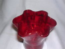 RED RUFFLED TOP HANDBLOWN ART GLASS VASE