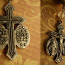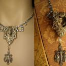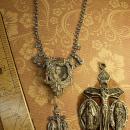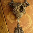 Religious Saint Necklace Vintage rhinestone dress clip antique religious medal goth necklace