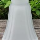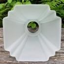 Contemporary replacement light fixture shade with frosted white finish with a bluish cast. Molded panels on a squared bell shape, with flared rim. Measures 4.875"h x 4.55"d, with a 2.25" fitter. May have some minor roughness around rims, but no large chips or cracks. Have 2, priced separately, but can be combined for shipping. Inglenook Antiques....Established 1989.
