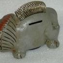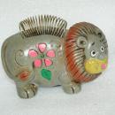 Retro Papier Mache Lion Bank, Letter and Pen Holder Made in Japan, Hand painted with bright contrasting color against a gray body. This one is rare as it has a dual purpose. The condition is very good. But some wear showing on the bottom of the feet and an indentation on the tail . He is a bit dirty looking. It is 5.25 long and 5" tall.