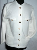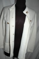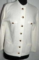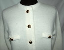 Retro Vintage White Wool Cardigan Sweater designed by Sidney Gould , for I. Magnin & Co. This sweater is from the 70's and in very good condition. I wish I could say excellent but the gold tone button show some wear. The the knit sweater appears to be flawless. It has two patch pocket on the lower front. The two breast pockets are only the facing and only for style. The measurements are: