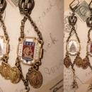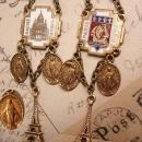 WIth artistic flair, these vintage enamel panels are from the 30's and were the perfect fit for these earrings. Four miraculous Mary religious medals hang from each corner and the Eiffel tower, the building in many romantic stories, finishes it off. THese are quite long ( 4 3\/4") and they hang from a royal crown at the top with victorian shells that are connected to hinged french wires. One of a kind and truly fabulous darling! VintageSparkles offers Layaway on all our Etsy pieces regardless of which site it comes from. Please remember that vintage & antique items are not mint, nor are they perfect but they sure are full of old history and charm. Please use photos to make your decisions and read our policies prior to buying so you can have an excellent experience with us. Please use this number when ordering ga44535 If you want to see more of these pretties this is the link to my etsy store. http:\/\/www.vintagesparkles.etsy.com\/