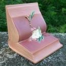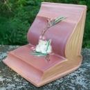 Roseville Pottery "Apple Blossom" single bookend #359. Ca. 1949. Pink background with white blossoms. Measures approximately 5.25" square. Nice condition with no chips or cracks. Inglenook Antiques...Established 1989.