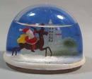 Santa rides a reindeer snowdome, Plastic souviner snowdome marked made in China, It is only 1/2 full of water but it looks like there is a plug on the bottom to refill. I don't know the age, but would think this is a newer one since it is made in China. Excellent condition. Aprox 3 1/4 x 2 1/4"