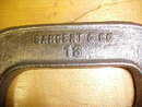 This is a good clean, useable, heavy duty antique C-Clamp, marked "SARGEMT & CO. 13" in raised cast lettering. This is a nice thick cast iron, very nicely made tool, that has a 3" capacity, and certainly heavy duty enough for metal working. In good condition, no rust, good threads, good swivel pad on the screw, and a nice wing type thumb screw. There is some pitting noted, but not rusty. A very hard to find old machinist tool!