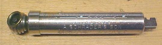This is a nice tire collectible! It is a Schrader's Sons tire gauge, it is marked SCHRADER PASSENGER TIRE GAUGE MANUFACTURED BY A. SCHRADER'S SON-INC. BROOKLYN N.Y. U.S.A. PATENTED 1.716.399 1.742.740 1.866.140 1.892.088. This gauge is about 3 3/4 inches long with the inside gauge retracted, and is brass on the outside. It has about 88% of the original nickel plating on it, some minor scratches, otherwise in very good condition. These are rather hard to find with most of the nickel plating intact. Shipping/insurance to continental US addresses will be $4.00