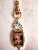 Victorian miniature Mocking bird Musical watch fob shrine ne...