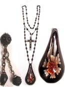 Hand carved black olive beads in the shape of roses are just the tip of the detail in this lovely ne...