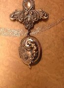 Gothic Winged Cherub locket necklace dripping in gunmetal ch...