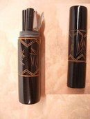 How neat is this 20's genuine bakelite lipstick shaped tube with ALL these pieces inside. Hard to be...