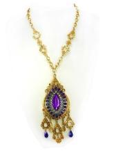Fit for the Goddess in all of us, this huge purple drop hangs from an ornate vintage chain with got...