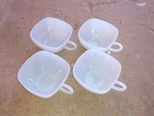 Set 4 Charm pattern Azurite gray white tone tea cups made by Anchor Hocking Fireking. Four saucers ...