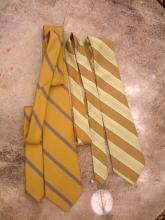 Pair 1960's era olive green bronze tone gray & orange striped neckties. Acetate Polyester &...