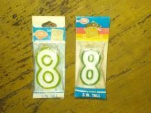 Pair green white number 8 holiday birthday candle cake decorations in Pioneer General Mills Betty C...
