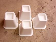 Set 4 molded white plastic bed leg riser furniture platforms.