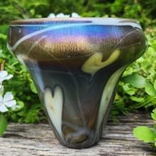 Fine Blown Art Glass Bowl , Signed and Dated, Blue with Gold Rim