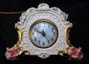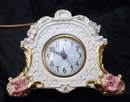 Beautiful Vintage- electric Session Clock in Applied Rose Porcelain Case - The case or housing is in excellent condition. It is all porcelain with applied roses and gold painted trim. It is a Coventry clock but not signed and the labels are long since gone. The clock is an electric Sessions movement with a sweeping second hand. The movement currently is not working. Although the motor hums. It did work find for me for years while I kept in plugged in. But it was left un-plugged too long so I think all it needs now is to be oil and cleaned.