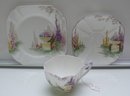 Beautiful Shelley bone china Queen Anne Garden Trio in excellent condition with no cracks or chips. the saucer measures 5 1/4" The bread and butter plate is 6 1/4"