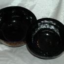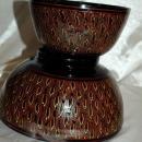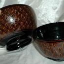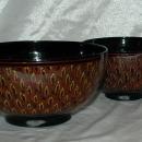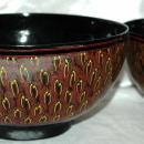 Asian Lacquer-Ware Bowl 2 nesting set, Black, Cinnabar Hand Painted Feathering