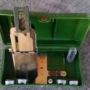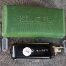 Singer USA Sewing Machine Attachment Buttonholer alteration accessory with original green plastic advertising box. 1950's Era patent numbers dates