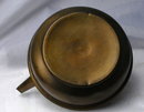 Small Brass Tea Pot Kettle with Wood Handles. It is unmarked. It is solid brass lined with tin and it could use a good polishing. There are a few small dings and scratches and the spout is bent a little bit. It is very old and charming. From the base to the finial and 8.5" if you include the bail handle. and 7.5 wide including the spout.