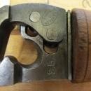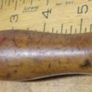 This is a nice 19th century hand tool called an adjustable throat leather shave. It is marked "SNELL & ATHERTON S5" on the steel. It is sharp and ready to use. Very little sign of use on the cutting edge and steel area. No rust, no damage. The handle is solid, has a leather add on tap at the end of the handle, to hang the tool on the wall. Measures 5.75" long overall. The total cutting edge is about 4.5" wide. A nice hard to find 1800's era leather shave!