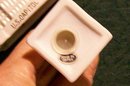 White ceramic salt & pepper set made as figural buildings representing the Washington Monument and Capitol Building. Metallic gold trim. Japan blue & white paper labels. Circa 1960's. Measure 4"h and 3" respectively. Good condition with no chips or cracks. Inglenook Antiques...Established 1989.