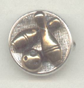 For the avid bowler in your life, this is a great little pin. It is a heavy, quality made little pin. It is only marked with a pat. number, no makers mark. It is a good silvertone circle base with 2 very detailed bowling pins and a really detailed bowling ball, complete with finger holes. It has some weight to it and measures approx. 1/2" across and 1/4" high. The shipping fees quoted are for first class/No insurance in USA.