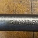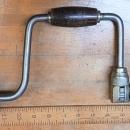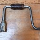 This is a super nice 10 inch sweep brace with the majority of the original nickel plating intact! It is marked STANLEY NO. 965N-10 IN. on the steel. The outer chuch sleeve is also marked STANLEY MADE IN U.S.A.. It retains about 75% of the original nickel plating, very little wear. The chuck works very smoothly, and ratchet system works smoothly! The jaws are in great shape also, very simple design on this model, no spring. or a place for a spring to spread the jaws in this design, but work just fine. The end handle flange is ball bearing drive, very smooth and easy to turn. The handles are made of an nicely stained hardwood, with some minor stain wear, very solid, and clean, little wear. It measure 13.5 long overall. A nice clean medium duty ratchet brace.